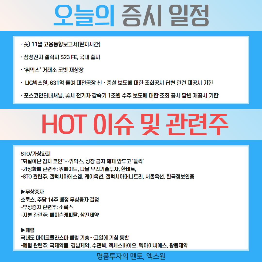 12/08(금) 해외시황&증시일정&HOT이슈 관련주