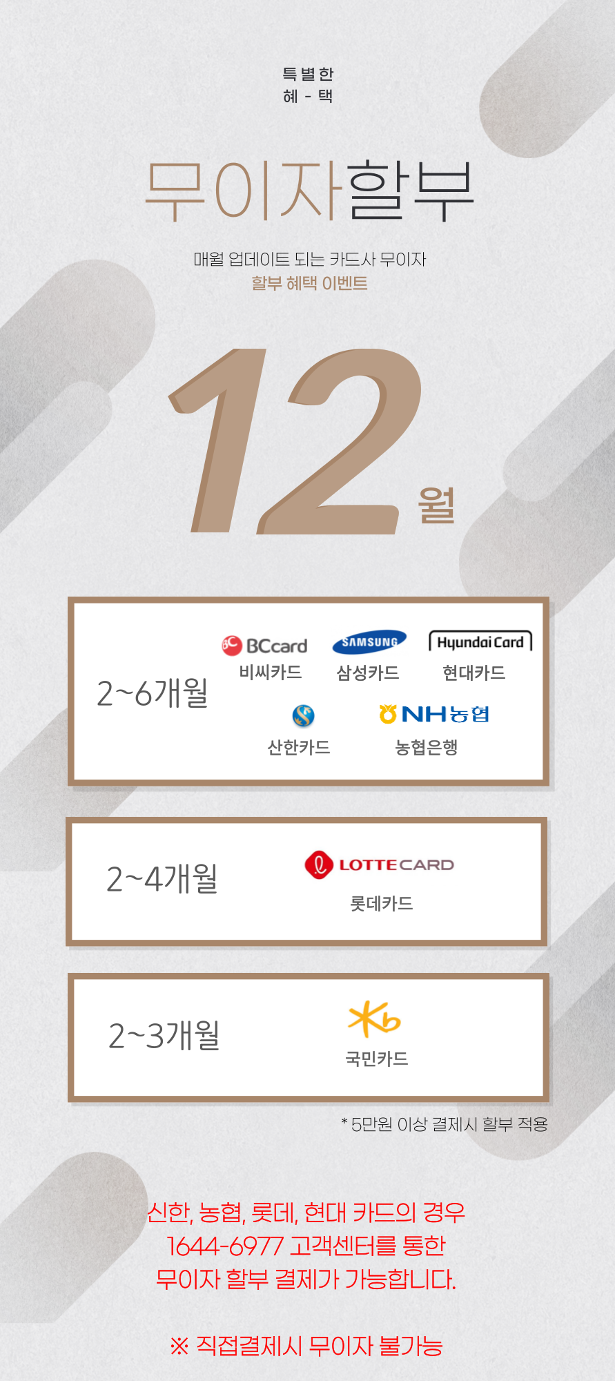 *법인/개인사업자의 기업,체크,선불,기프트 카드의 경우 무이자할부 행사에서 제외됩니다.