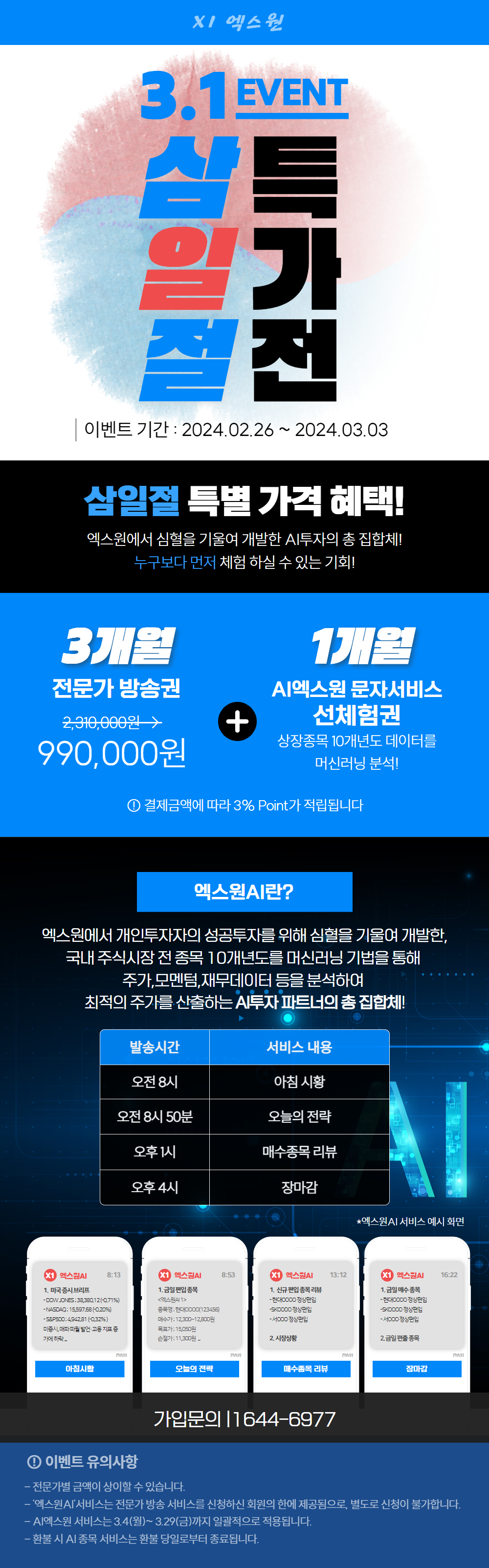 [이벤트] 엑스원 AI 선체험권 증정! 삼일절 특가이벤트!