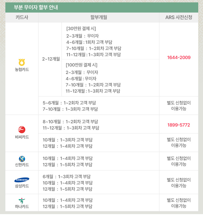 *BC카드 부분무이자는 ARS사전신청시 고객 유리한 조건으로 적용됩니다.
