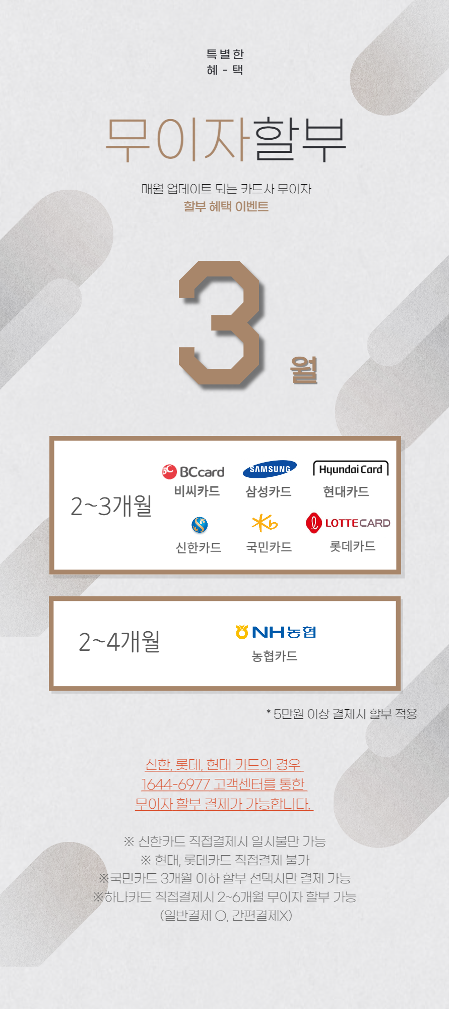 *법인/개인사업자의 기업,체크,선불,기프트 카드의 경우 무이자할부 행사에서 제외됩니다.