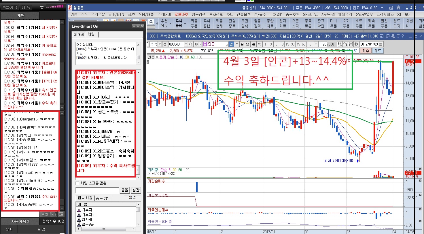 4월 3일 금일 수익 실현 종목^^([인콘]+13~+14.4% 수익 축하드립니다.(채팅창 인증))