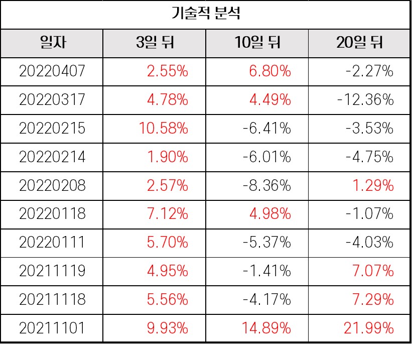 ‘3연속 음봉 및 하락’이 발생했던 날의 종가 기준 주가