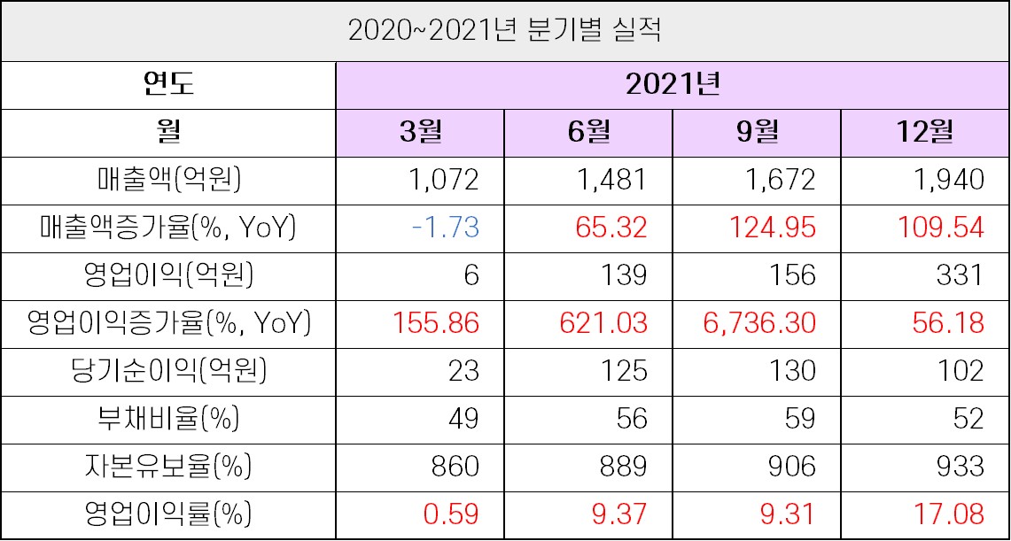 각각 84%, 4333%, 647% 증가. 1분기 기준, 상장사 가운데 영업이익이 가장 많이 증가한 기업으로 선정.