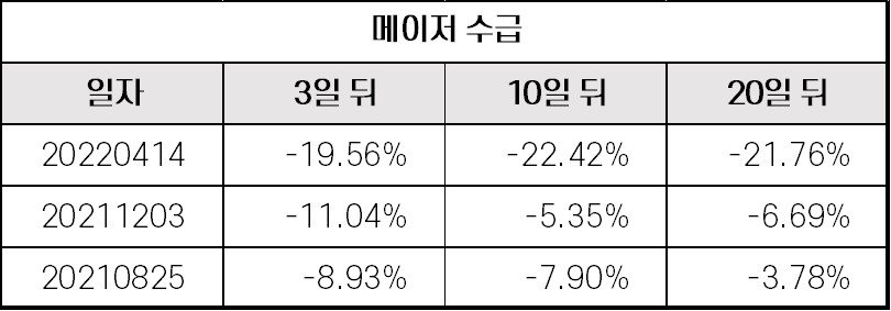 이상이었던 날의 종가 기준 주가 변동(최근 3개 시점)