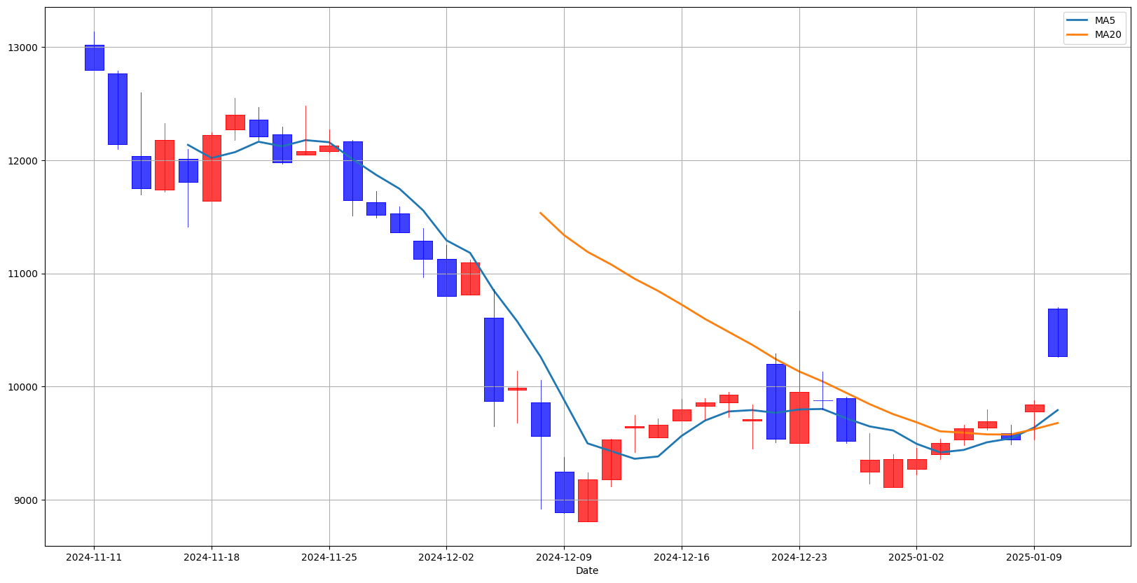 이평선이 20일 이평선을 돌파하는 골든크로스 발생, 발생