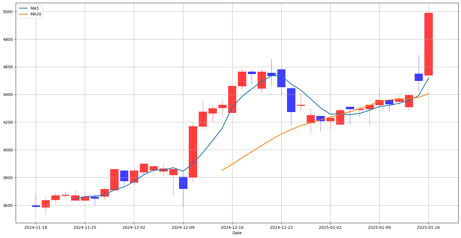 이평선이 20일 이평선을 돌파하는 골든크로스 발생, 발생