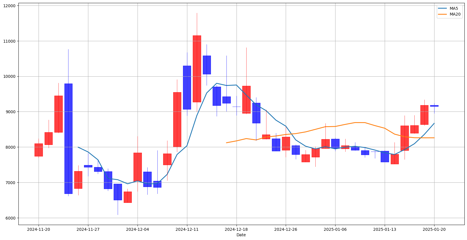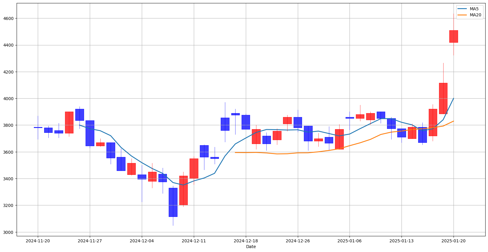 이평선이 20일 이평선을 돌파하는 골든크로스 발생, 발생