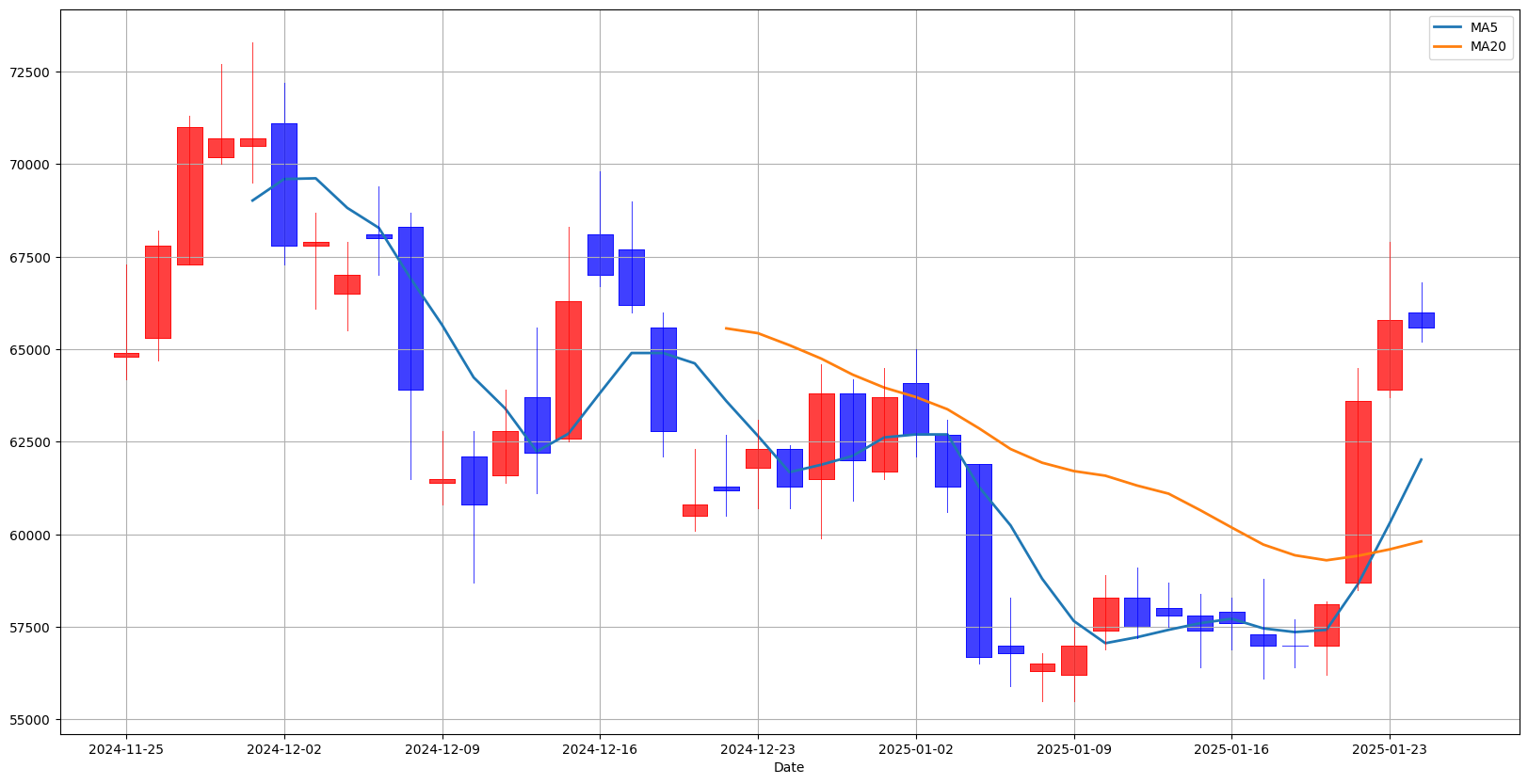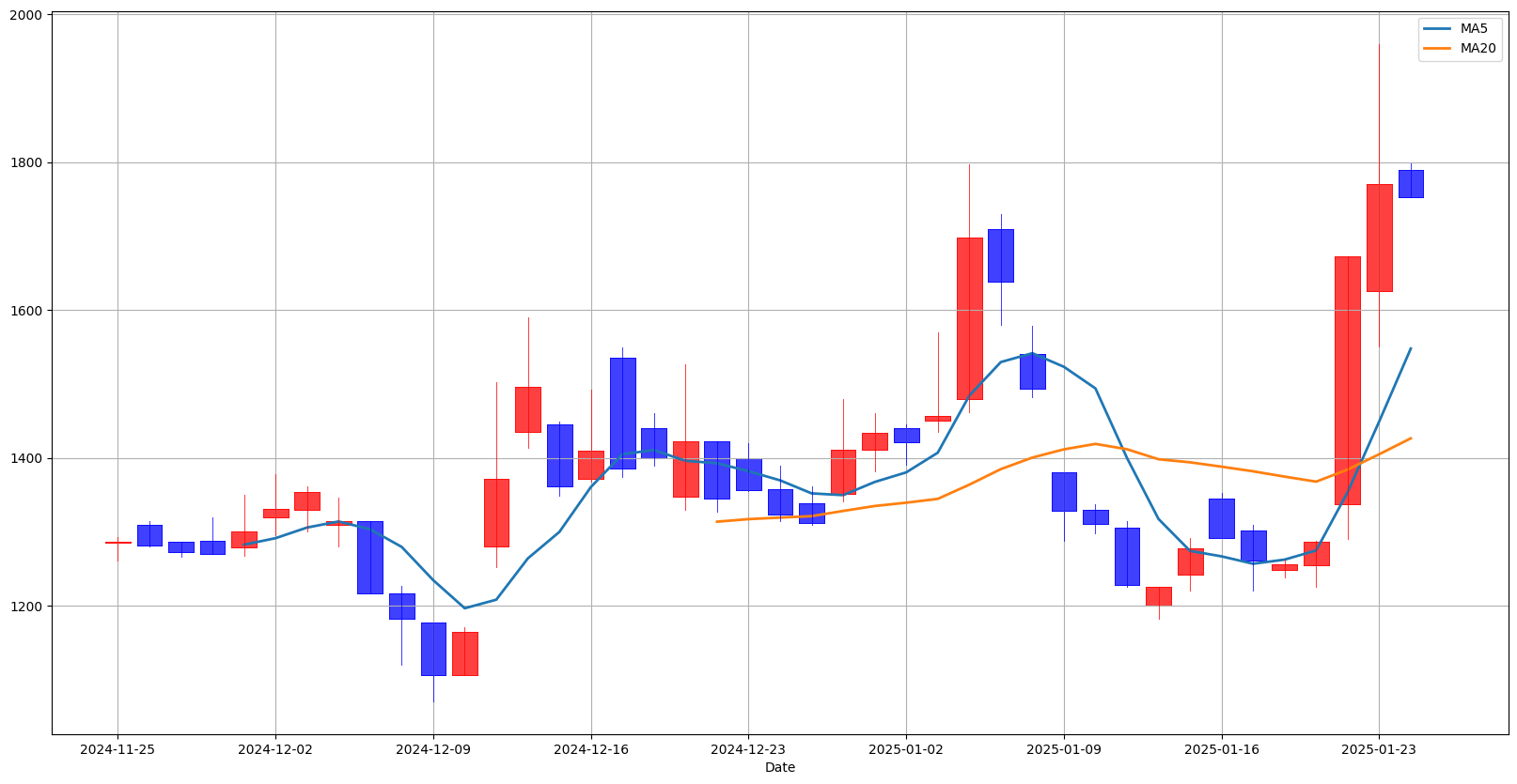 이평선이 20일 이평선을 돌파하는 골든크로스 발생, 발생