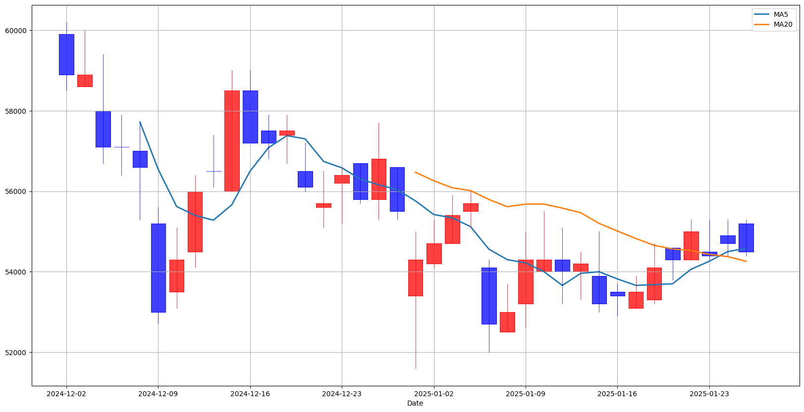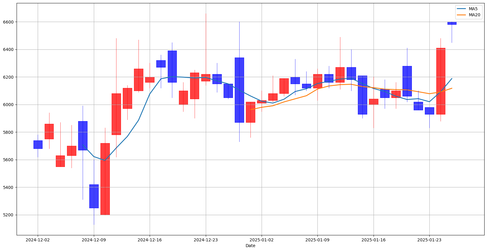 이평선이 20일 이평선을 돌파하는 골든크로스 발생, 발생