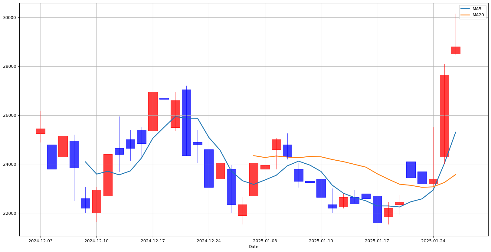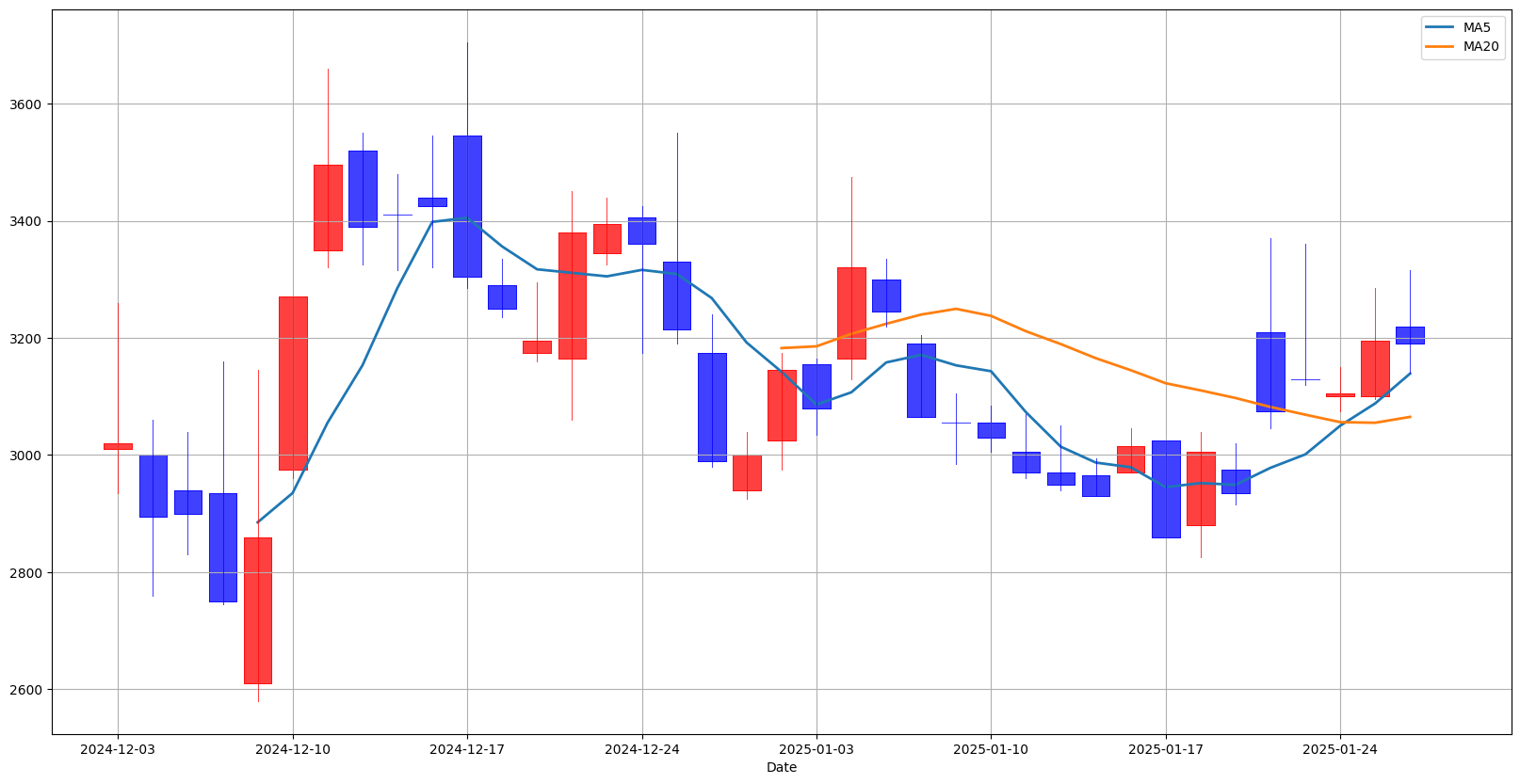 이평선이 20일 이평선을 돌파하는 골든크로스 발생, 발생