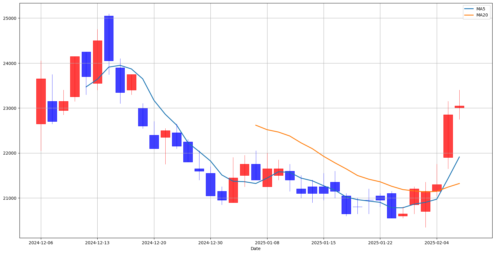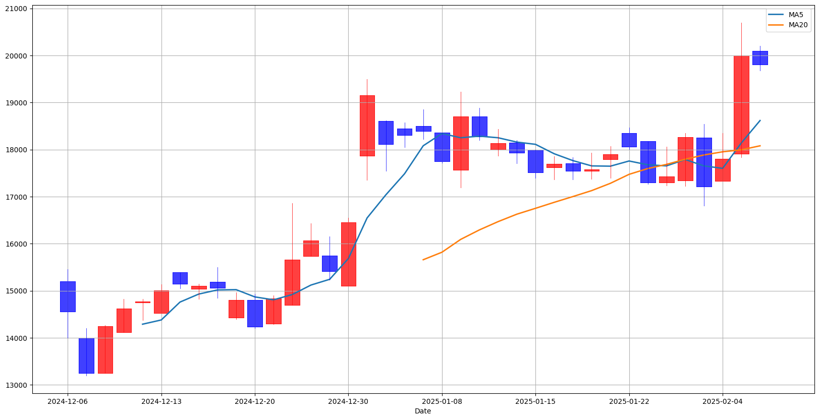 이평선이 20일 이평선을 돌파하는 골든크로스 발생, 발생