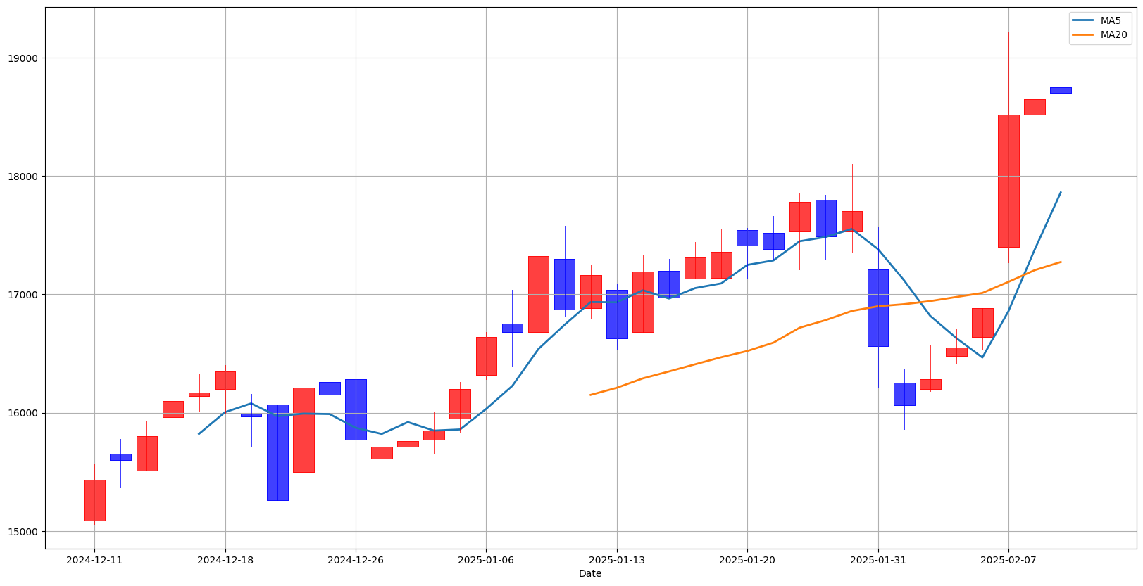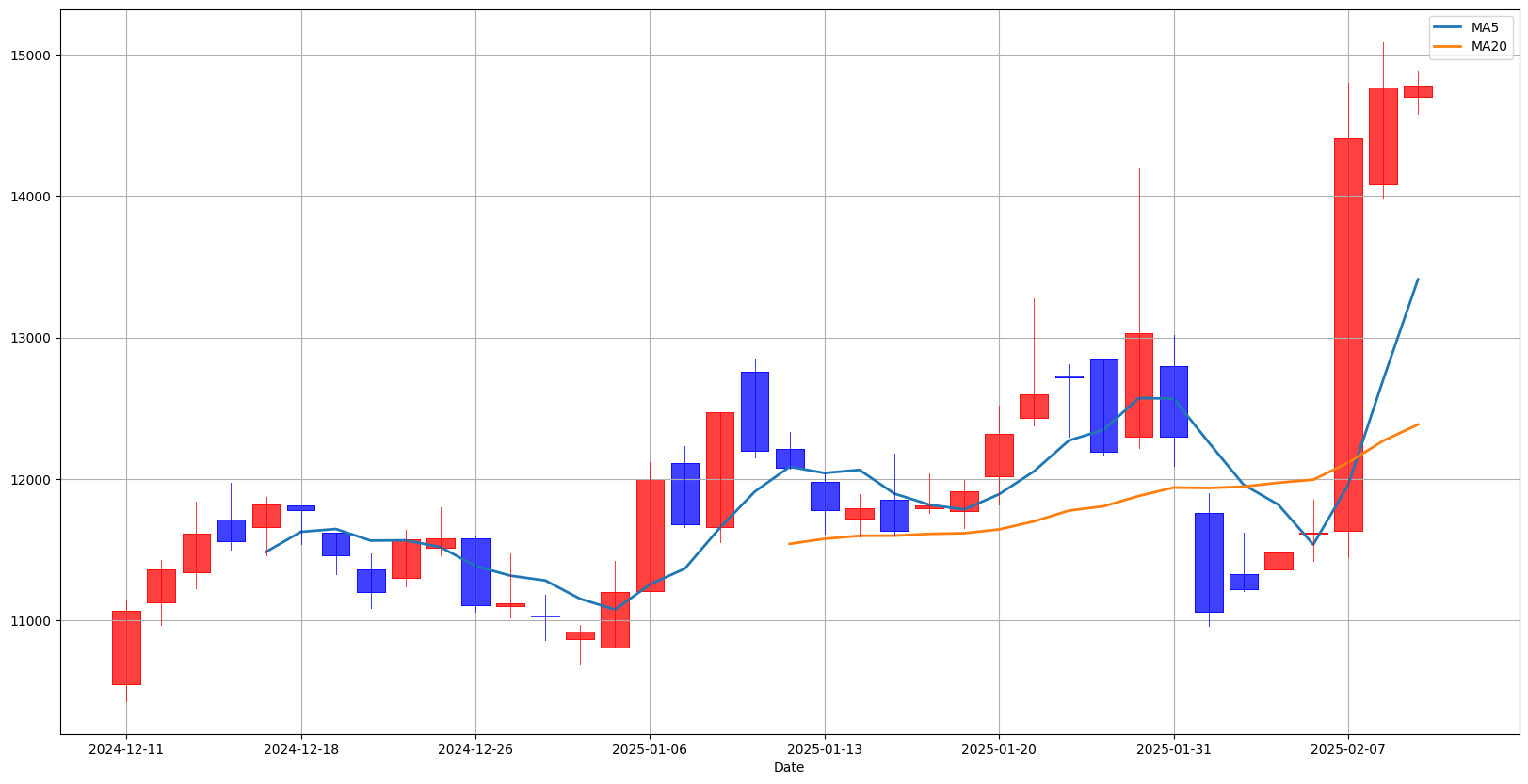 이평선이 20일 이평선을 돌파하는 골든크로스 발생, 발생