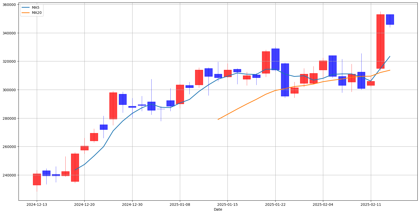 이평선이 20일 이평선을 돌파하는 골든크로스 발생, 발생