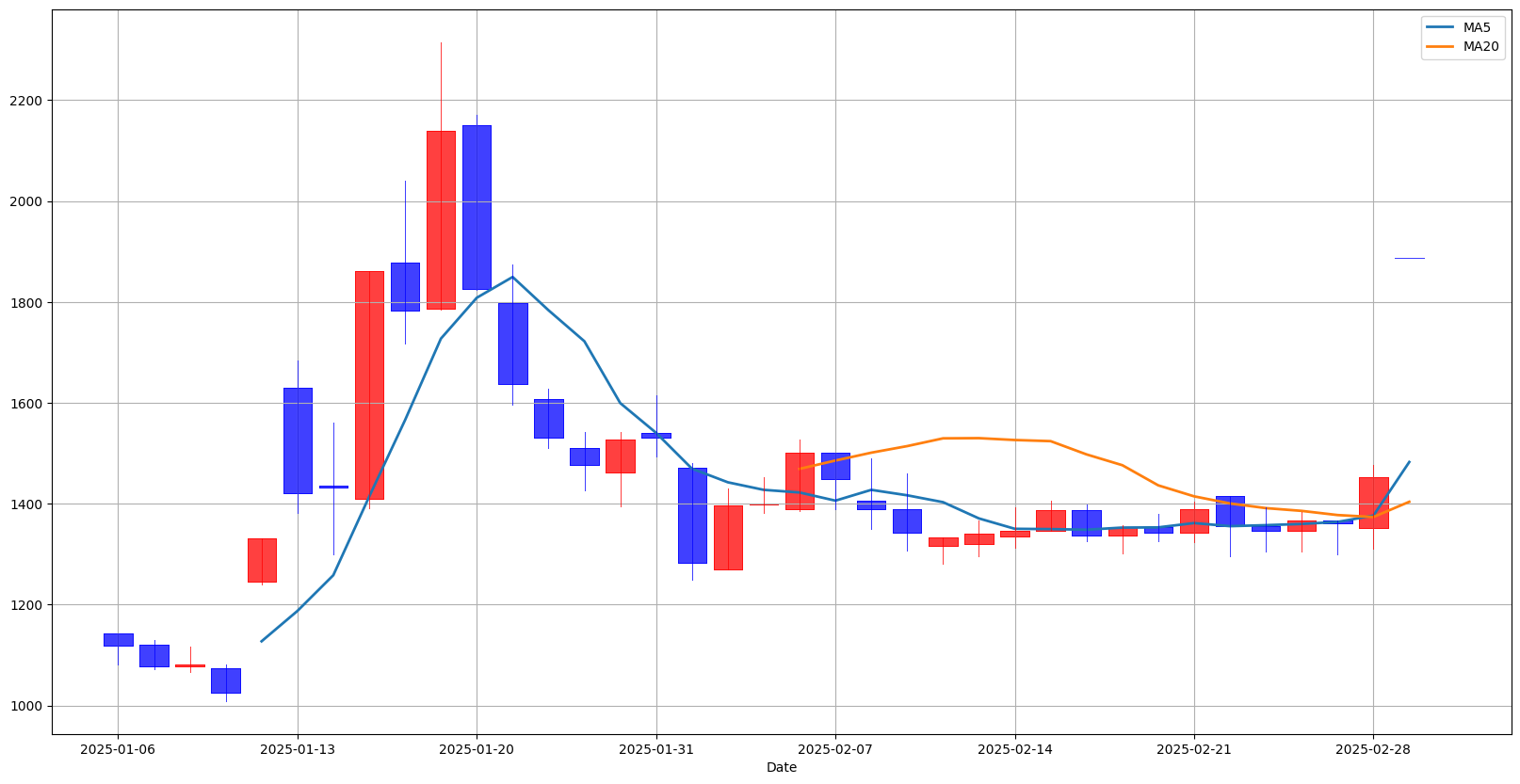 이평선이 20일 이평선을 돌파하는 골든크로스 발생, 발생