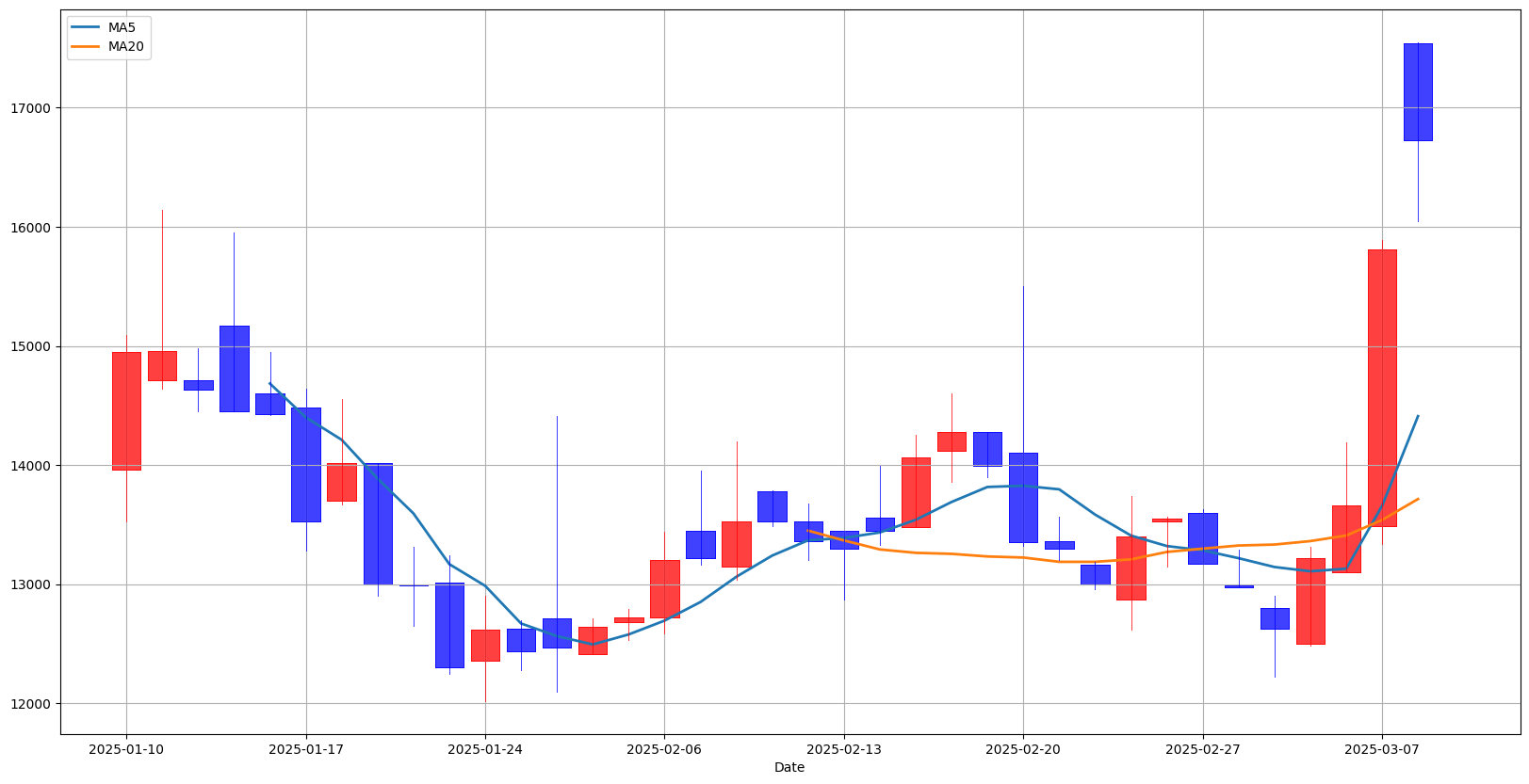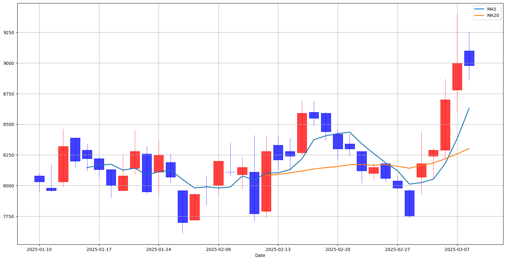 이평선이 20일 이평선을 돌파하는 골든크로스 발생, 발생