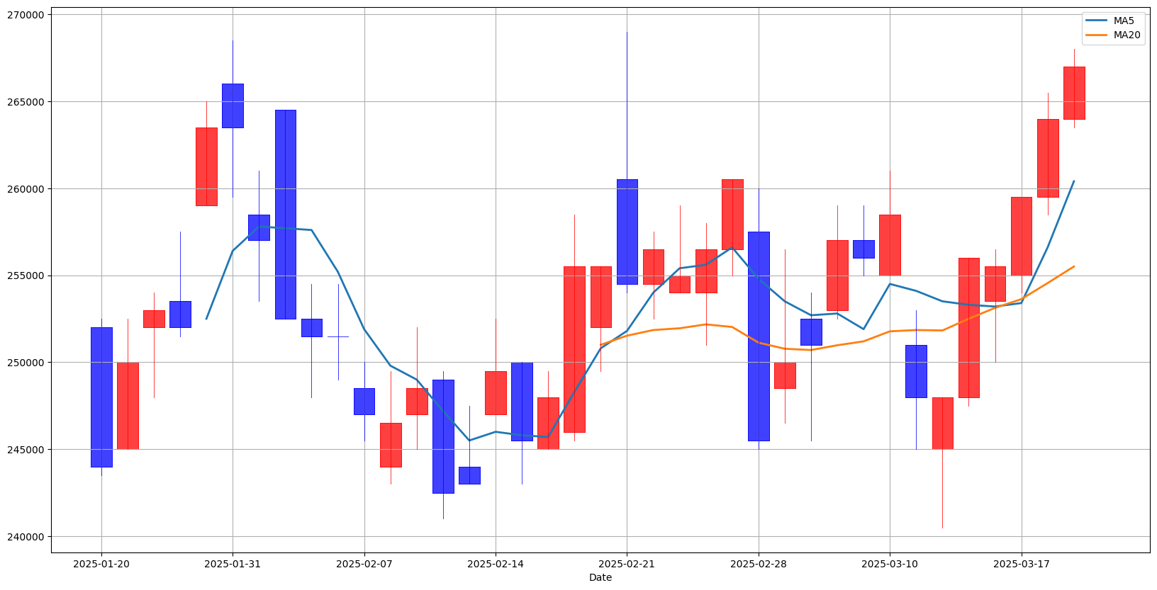3월 18일 5일 이평선이 20일