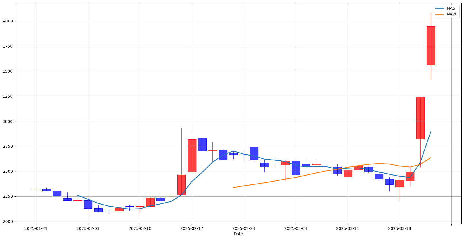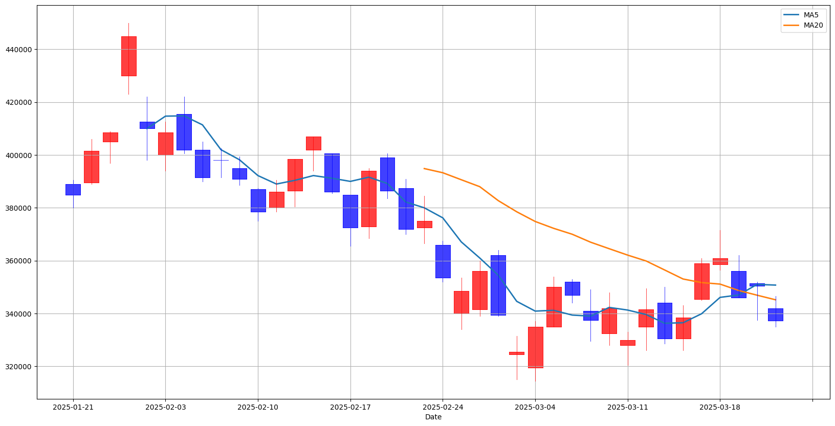 이평선이 20일 이평선을 돌파하는 골든크로스 발생, 발생