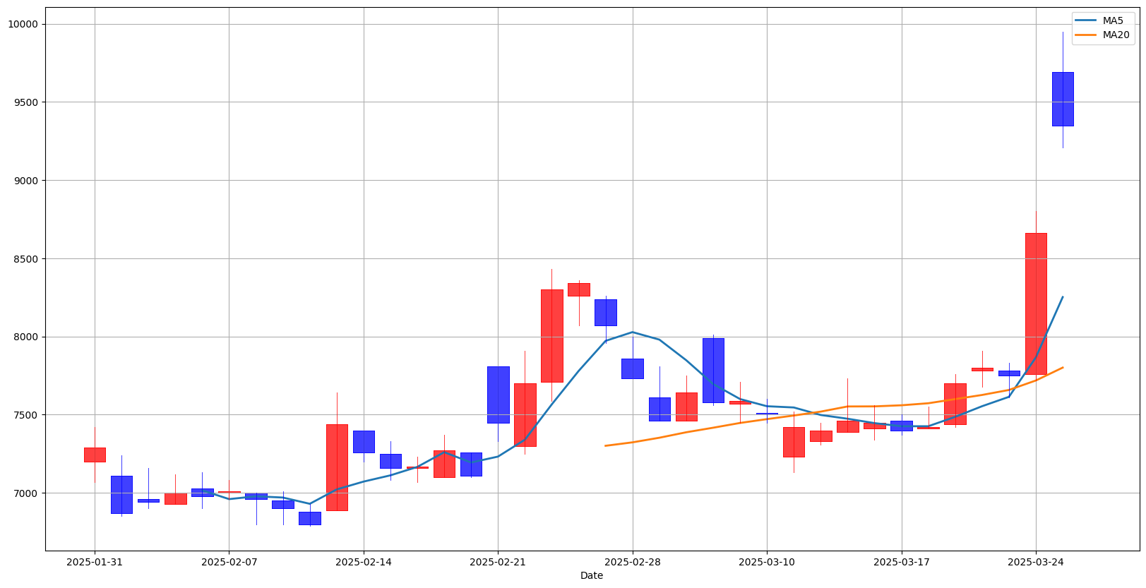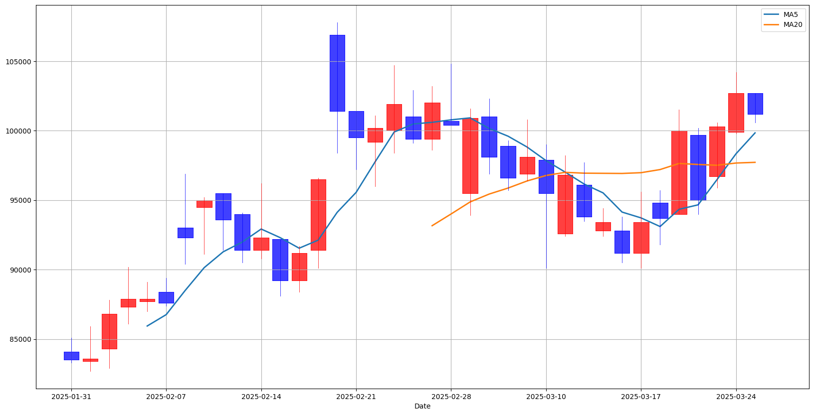 이평선이 20일 이평선을 돌파하는 골든크로스 발생, 발생