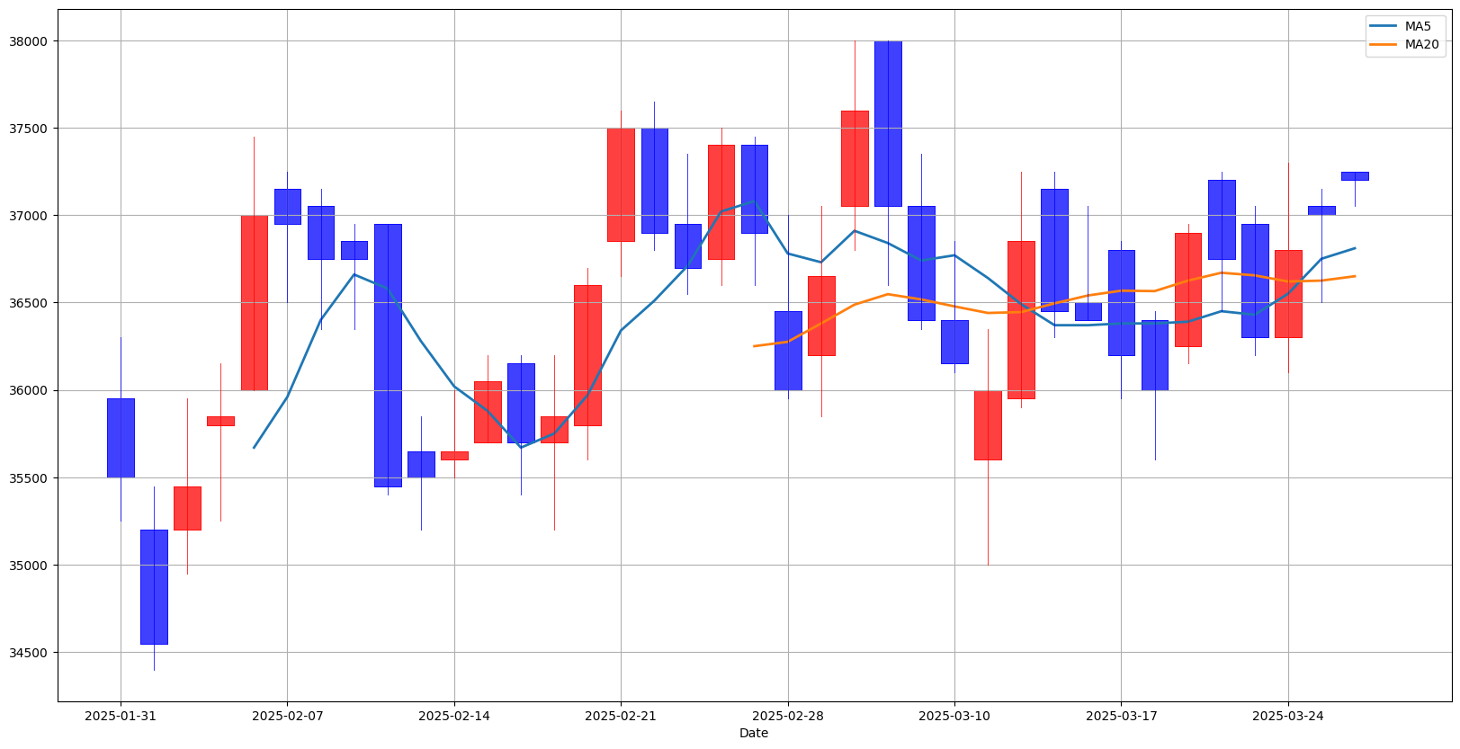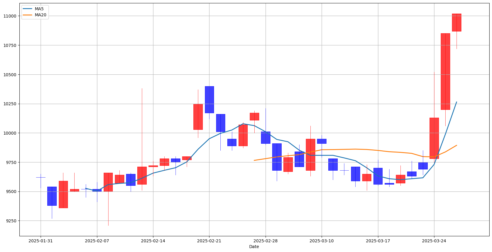 이평선이 20일 이평선을 돌파하는 골든크로스 발생, 발생