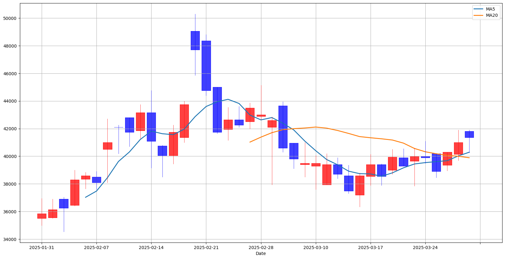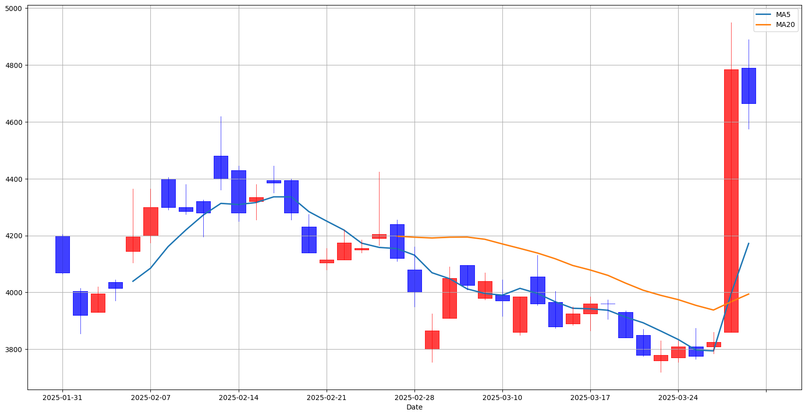이평선이 20일 이평선을 돌파하는 골든크로스 발생, 발생